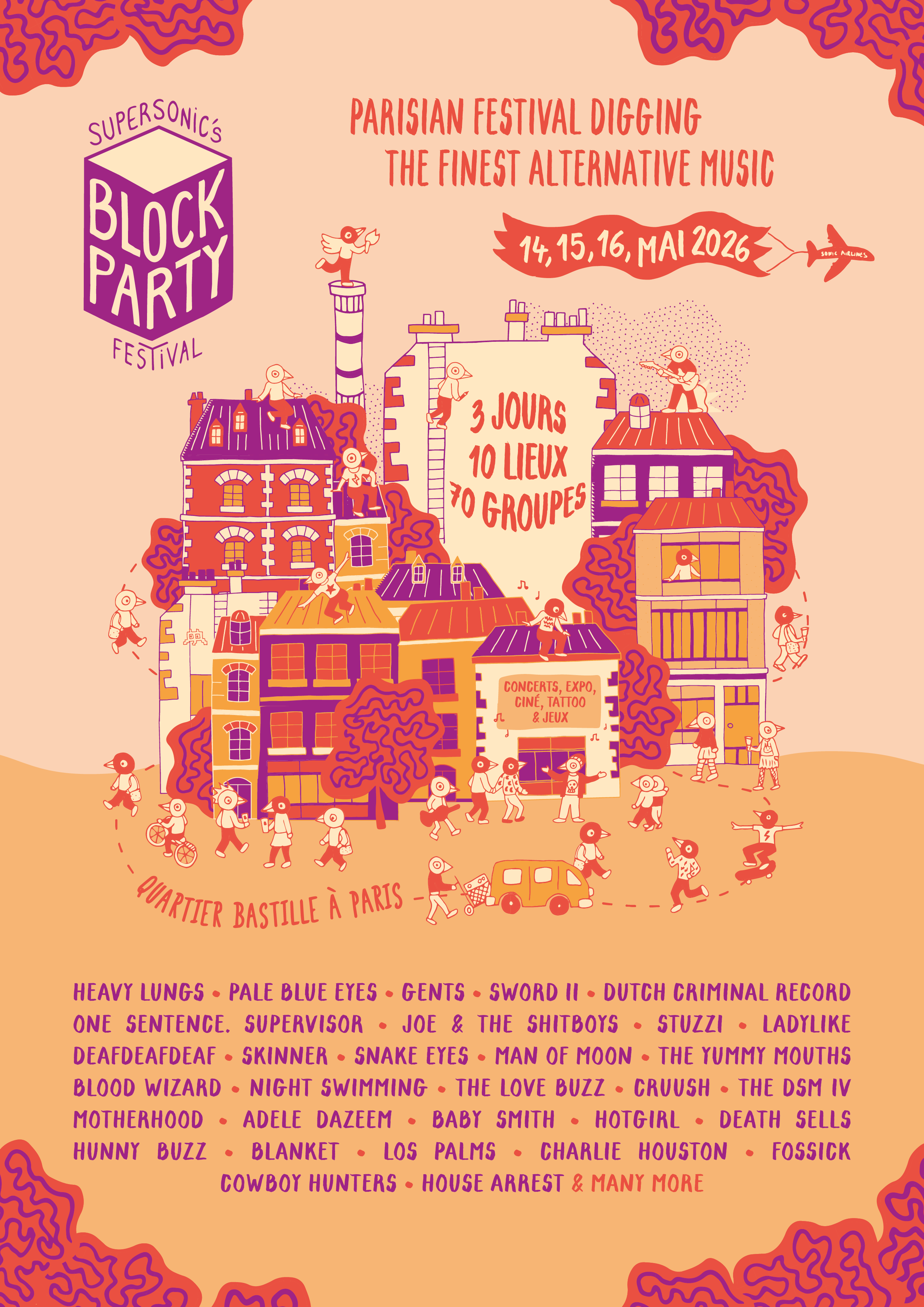 Après 3 premières éditions remarquées, la Supersonic’s Block Party Festival revient pour sa 4ème édition. Suite au succès de l’édition XXL de l’an dernier, le festival revient les 14, 15, 16 mai 2026 pour investir l’ensemble du quartier de Bastille à Paris. Trois jours de concerts et d’activités culturelles, répartis dans une dizaine de lieux des 11ème et 12ème arrondissements, pour une immersion totale dans l’un des quartiers les plus dynamiques de la capitale.